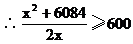 得x2-1200x+6084≥0(x>0),解得x≤5.1或x≥1194.9(舍)