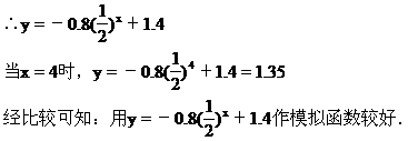 [例8] 某工厂今年1月、2月、3月生产某产品分别为1万件、1.2万件、1.3万件.为了估测以后每个月的产量,以这三个月的产品数量为依据,用一个函数模拟该产品的月产品的月产量y与月份数x的关系,模拟函数可以选用二次函数或函数y=abx+c(其中a、b、c为常数),已知4月份该产品的产量为1.37万件,请问用以上哪个函数作为模拟函数较好,并说明理由.