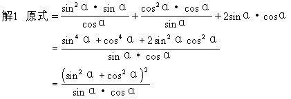 说明 (1)在解1中,将正切、余切化为正弦、余弦再化简,仍然是循着减少函数种类的思路进行的.