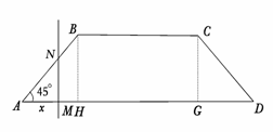 18. (12分)如图所示,等腰梯形ABCD的两底分别为AD=2,BC=1,∠BAD=45°,直线MN⊥AD交AD于M,交折线ABCD于N,记AM=x,试将梯形ABCD位于直线MN左侧的面积y表示为x的函数,并写出函数的定义域和值域.