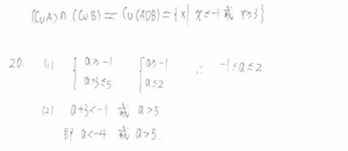 20.已知集合A={x|a≤x≤a+3},B={x|x<-1或x>5}.