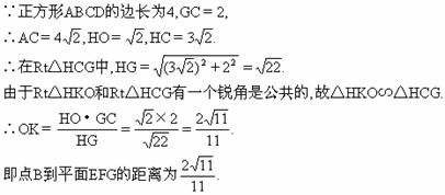 作OK⊥HG交HG于点K,由两平面垂直的性质定理知OK⊥平面EFG,所以线段OK的长就是点B到平面EFG的距离.