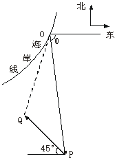 22.(14分)在某海滨城市附近海面有一台风,据监测,当前台风中心位于城市O(如图)的东偏南θ(其中θ=arccos