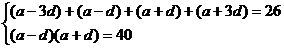 4、成等差数列的四个数之和为26,第二数和第三数之积为40,求这四个数.