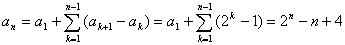 例7.数列{an}的二阶差数列是等比数列,且a1=5,a2=6,a3=9,a4=16,求{an}的通项公式
