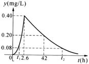 18.某口服抗生素做药物代谢动力学实验:服药后能快速被血液吸收,2.6 h后,血液药浓度达到峰值0.40 mg/L,单剂给药血消除半衰期39.4 h(从峰值到一半的时间),设t(h)为服药后的时间,y(mg/L)表示血液药浓度,拟合函数关系为:
