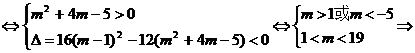 12.若关于x的不等式(m2+4m-5)x2-4(m-1)x+?3>0?对一切实数x恒成立,求m的取值范围.