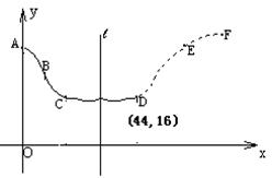 条平滑均线(记作MA)的变化情况来决定买入或卖出股票。股民老赵在研究股票的走势图时,发现一只股票的MA均线近期走得很有特点:如果按如图所示的方式建立平面直角坐标系xoy,则股价y(元)和时间x的关系在ABC段可近似地用解析式![]()
