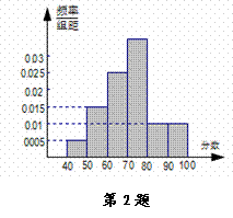 2.统计某校800名学生的数学期末成绩,得到频率分布直方图如图示,若考试采用100分制,并规定不低于60分为及格,则及格率为 ▲ .