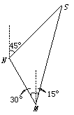 (12分)如图,一货轮航行到M处,测得灯塔S在货轮的北偏东15°相距20里处,随后货轮按北偏西30°的方向航行,半小时后,又测得灯塔在货轮的北偏东45°,求货轮的速度.