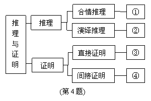 如图是人教A版教材选修1-2第二章“推理与证明”的知识结构图(部分),如果要加入知识点“三段论”,则应该放在图中 ( ).
