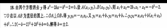 18.(12分)直线y=x+b与双曲线2x2-y2=2相交于A, B两点,若以AB为直径的圆过原点,求b的值.
