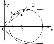 24、已知抛物线y2=2px(p>0)与圆(x-2)2+y2=3相交,A、B是它们在x轴上方的交点(如图)若线段AB的中点M在直线y=x上,求p的值。
