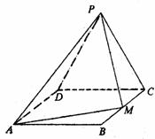 ,M为BC的中点,(1)证明:AM⊥PM;(2)求二面角P-AM-D的大小;(3)求点D到平面AMP的距离.