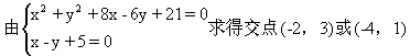 3.未经过原点,且过圆x2+y2+8x-6y+21=0和直线x-y+5=0的两个交点的圆的方程.