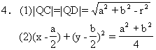 4.由圆外一点Q(a,b)向圆x2+y2=r2作割线交圆于A、 B两点,向圆x2+y2=r2作切线QC、QD,求: