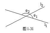 两条直线l1和l2相交构成四个角,它们是两对对顶角.为了区别这些角,我们把直线l1依逆时针方向旋转到与l2重合时所转的角,叫做l1到l2的角.图1-27中,直线l1到l2的角是θ1,l2到l1的角是θ2(θ1+θ2=180°).