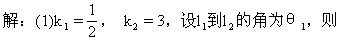 现在我们来求斜率分别为k1、k2的两条直线l1到l2的角,设已知直线的方程分别是