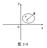问题2:图2-9中哪个点是定点?哪个点是动点?动点具有什么性质?圆心和半径都反映了圆的什么特点?
