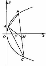 上,△ABC的重心与此抛物线的焦点F重合(如图)
