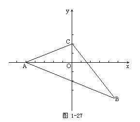 例2 三角形的顶点是A(-5,0)、B(3,-3)、C(0,2)(图1-27),求这个三角形三边所在直线的方程.