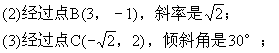 (5)经过点E(4,-2),倾斜角是120°.