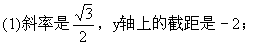 (2)倾斜角是135°,y轴上的截距是3.