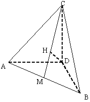 已知等腰Rt△ABC中,∠ACB=90°,AC=2, 以AB边上的高CD为轴,把△ADC绕轴旋转至∠ADB=90°,并在AB上取中点M, 过D作DH⊥CM于H.