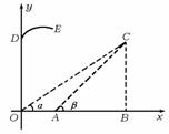 如图所示是某防空部队进行射击训练时在平面直角坐标系中的示意图,在地面O、A两个观点测得空中固定目标C的仰角分别为α和β,OA=1千米,tanα=
