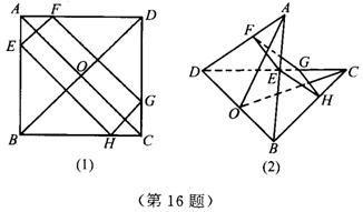16.如图(1),在正方形ABCD的四边,AB,AD,CD,BC上分别取点E,F,G,H,使AE︰EB=AF︰FD=CG︰GD=CH︰HB=1︰2,把正方形沿BD折起得图(2).