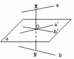 由此联想到平面几何中的定理“垂直于同一条直线的两条直线平行”,从把a、b转移到同一平面内着手。