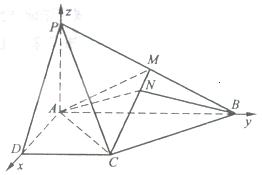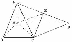 (Ⅰ)证明:面PAD⊥面PCD;(Ⅱ)求AC与PB所成的角;(Ⅲ)求面AMC与面BMC所成二面角的大小。