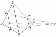 求证:EH、FG必相交于一点,且交点在BD的延长线上。