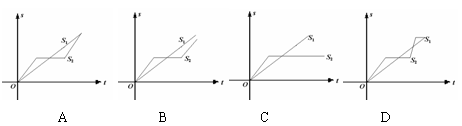 9、 “龟兔赛跑”讲述了这样的故事:领先的兔子看着慢慢爬行的乌龟,骄傲起来,睡了一觉,当它醒来时,发现乌龟快到终点了,于是急忙追赶,但为时已晚,乌龟还是先到达了终点…用S1、S2分别表示乌龟和兔子所行的路程,t为时间,则下图与故事情节相吻合的是