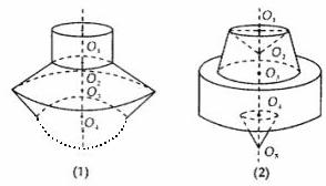 其中(l)由一个圆柱O1O2和两个圆台O2O3、,圆台O3O4组成;(2)由一个圆锥O4O5,一个圆柱O3O4及一个圆台O1O3中挖去圆锥O1O2组成.