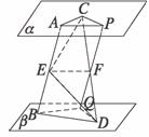 9已知平面α∥平面β,其间夹一垂线段AB=4,另一斜线段CD=6,且AC=BD=3.E、F分别是AB、CD的中点,则EF的长为( )