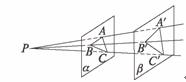 11如下图,点P是一光源,将一投影片放在平面α内,问投影幕所在平面β与平面α______时,投影图象的形状不发生变化.