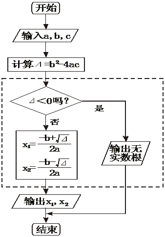 3. 下面是描述求一元二次方程ax2+bx+c=0的根的过程的程序框图,请问虚线框内是什么结构?