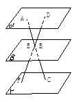 6.如图,直线AC,DF被三个平行平面α、β、r所截,若AC与α成30°角,AB=4,BC=12,DF=10,则平面β、r间的距离为__ _____,DE=________,EF=_______。
