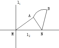 16. 如图,直线l1和l2相交于点M,l1⊥l2,点N∈l1,以A、B为端点的曲线段C上的任一点到l2的距离与到点N的距离相等,若ΔAMN为锐角三角形,