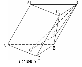 (本题14分) 如图,在斜三棱柱ABC-A1B1C1中,侧面AA1B1B⊥底面ABC,侧棱AA1与底面ABC成600的角, AA1= 2.底面ABC是边长为2的正三角形,其重心为G点。E是线段BC1上一点,且BE=