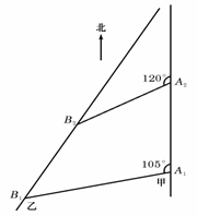 海里的速度向正北方向航行,乙船按固定方向匀速直线航行,当甲船位于