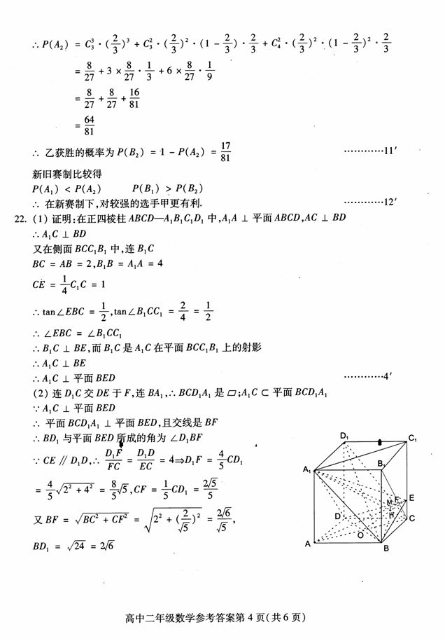 平面BED; ⑵求