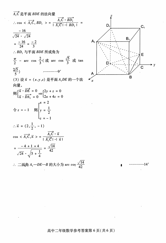 与平面BED所成的角;⑶求二面角