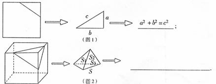 16、用一条直线截正方形的一个角,得到边长为a,b,c的直角三角形(图1);用一个平面截正方体的一个角,得到以截面为底面且面积为S,三个侧面面积分别为S1,S2,S3的三棱锥(图2). 试类比图1的结论,写出图2的结论.