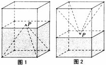 7. 如图1,一个正四棱柱形的密闭容器底部镶嵌了同底的正四棱锥形实心装饰块,容器内盛有a升水时,水面恰好经过正四棱锥的顶点P。如果将容器倒置,水面也恰好过点P(图2)。有下面四个命题: