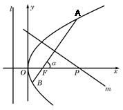 为锐角,作线段AB的垂直平分线m交x轴于点P,求|FP|取值范围