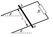 如图所示,两根足够长、电阻不计的光滑平行金属导轨相距为L=1m,导轨平面与水平面成θ=30°角,上端连接阻值R=1.5Ω的电阻;质量为m=2kg、阻值r=0.5Ω的金属棒ab放在两导轨上,棒与导轨垂直并保持良好接触。整个装置处于一匀强磁场中,该匀强磁场方向与导轨平面垂直,磁感应强度大小为2.0T。现由静止释放金属棒,金属棒在下滑过程中始终与框架垂直,g=10m/s2求: