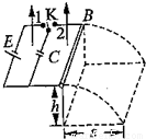 如图所示,质量为m的金属棒,搁在光滑导轨的右端,导轨间距为L,距离地面高度为h,处于大小为B,方向竖直向上的匀强磁场中,并接有电动势为E的电池和电容为C的电容器,当将开关K从位置1拨至位置2时,金属棒被抛出的水平距离为s,计算:(1)安培力对金属棒做的功;(2)电容器的剩余电量