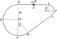 如下图是放置在竖直平面内游戏滑轨的模拟装置,滑轨由四部分粗细均匀的金属杆组成:水平直轨AB,半径分别为R1=1.0 m和R2=3.0 m的圆弧形轨道,倾斜直轨CD长为L=6 m且表面粗糙,动摩擦因数为,其他三部分表面光滑,AB、CD与两圆形轨道相切.现有质量为m=2 kg的小球穿在滑轨上,球从AB的中点E处以v0=10 m/s的初速度水平向左运动.已知.(取g=10 m/s2,cos37°=0.8)求: